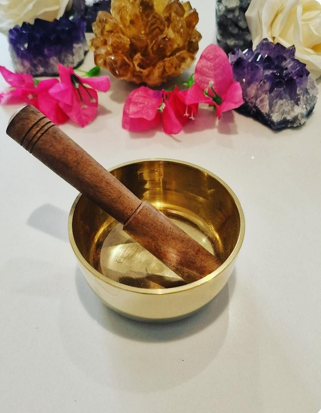 To use, hold the bowl gently in the palm of your hand and strike the outside of the bowl. While the tone rings, lightly circle the striker around the outside of the bowl.